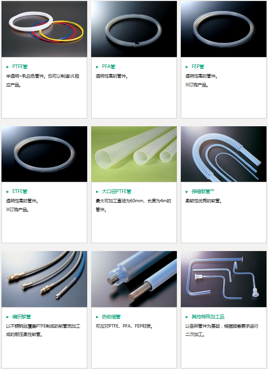 從以PTFE、PFA為代表的直管到管件的各種加工,本公司以廣泛的技術(shù)生產(chǎn)力和多年的實(shí)績,滿足客戶的需求。
